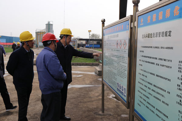 3月23日上午,淮南市委常委、副市長楊東坡一行蒞臨安徽德邦公司檢查安全生產(chǎn)工作。市經(jīng)濟(jì)技術(shù)開發(fā)區(qū)管委會(huì)主任張海濤,市應(yīng)急管理局局長李寶云等省市安全專家一起陪同檢查。楊市長一行在公司領(lǐng)導(dǎo)的陪同下分別來到液氨貯槽和甲醇罐區(qū)實(shí)地查看安全生產(chǎn)運(yùn)行情況,要求企業(yè)認(rèn)真汲取江蘇省鹽城市響水縣天嘉宜化工有限公司“3•21”爆炸事故教訓(xùn),全面排查治理安全隱患,嚴(yán)格落實(shí)安全生產(chǎn)責(zé)任制,開展全員安全警示教育,扎實(shí)做好當(dāng)前化工和危險(xiǎn)化學(xué)品安全生產(chǎn)工作,嚴(yán)防各類事故的發(fā)生。