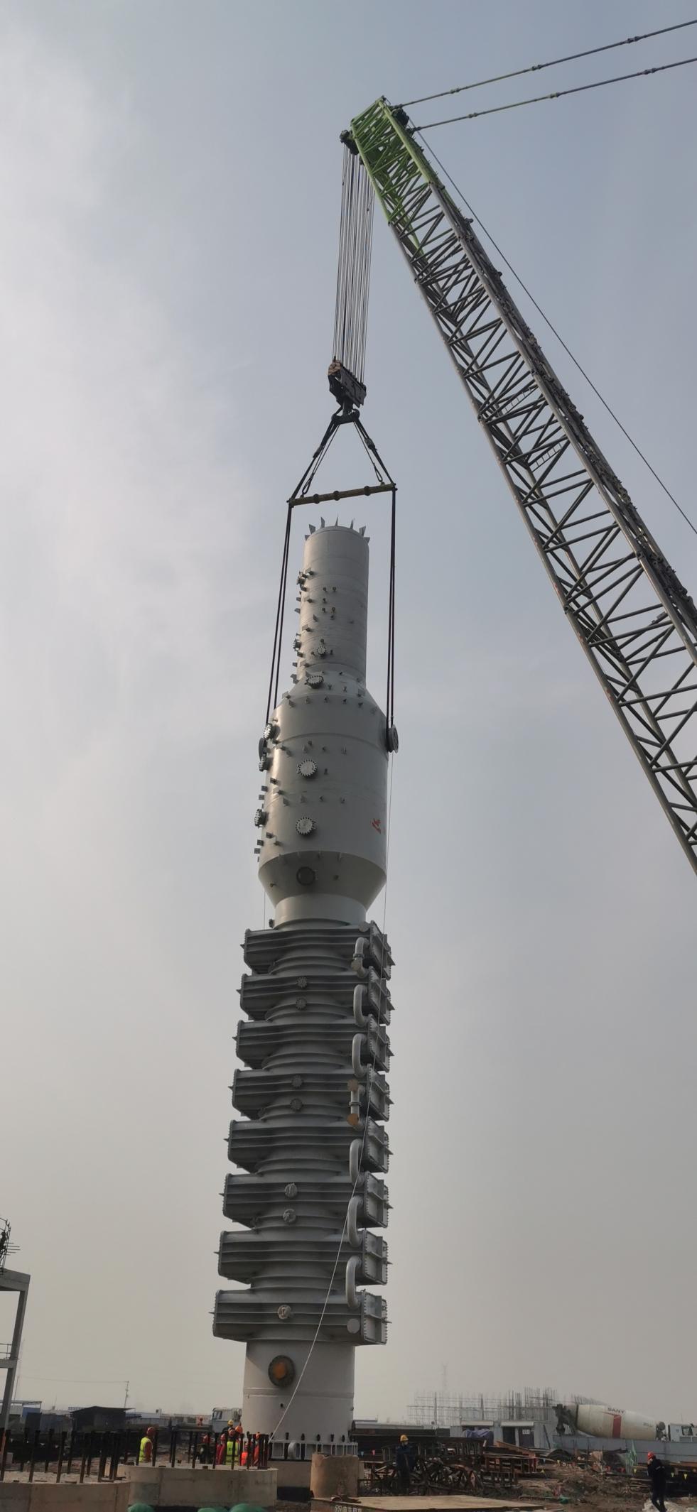 興華科技公司聯堿碳化塔裝置開始起吊安裝