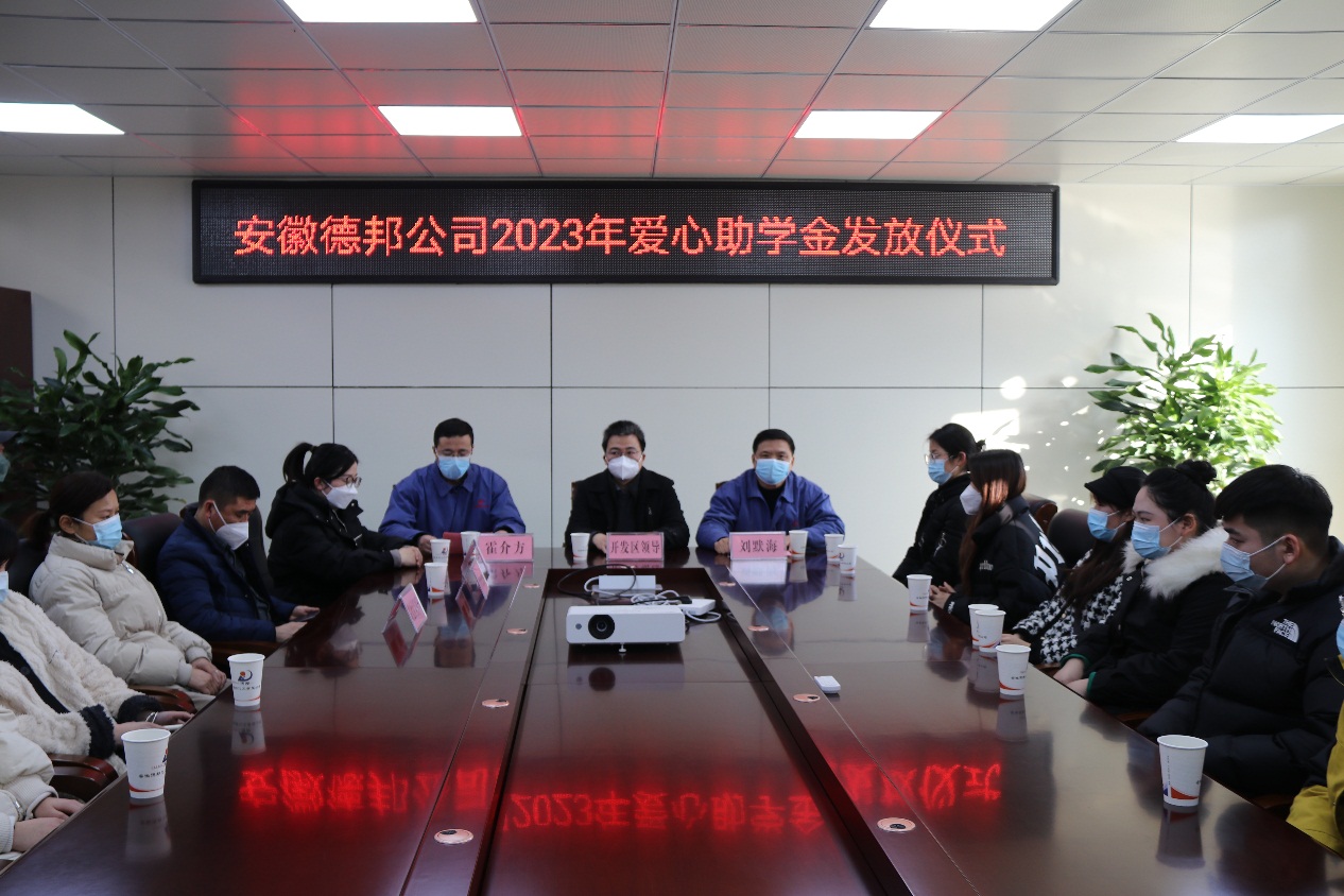 安徽德邦公司的助學活動就像是一縷春風,一股暖流,所到之處愛心傳遞,真情涌動。2023年1月8日下午在安徽德邦公司一樓會議室,公司舉辦2023年“愛心助學 新春筑夢”助學金發放儀式?;茨辖洕夹g開發區工委委員、黨政辦主任姚多智、公司黨總支書記劉默海、總經理助理霍介方、皖化社區、朝陽社區、田東社區的負責人,以及受助學生和家長出席了本次愛心助學金發放儀式?;茨想娨暸_、淮南日報社等新聞媒體應邀進行了采訪報道。 公司總經理助理霍介方主持愛心助學金發放儀式并宣讀受助學生名單,公司黨總支書記劉默海代表公司向出席愛心助學金發放儀式的各級領導表示感謝,向受助學生和家長表示熱烈的祝賀,并對受疫情影響延期舉辦2022級新生助學金發放儀式表達歉意。20年來,安徽德邦公司每年堅持對本公司職工子女考上高等院校的,發放愛心助學金。2018年后,為感謝企業周邊皖化社區、田東社區、朝陽社區居民多年來對企業成長和發展的關心和支持,將這一活動擴展到周邊三個社區的居民子女。這一活動,充分體現了德邦公司回饋社會關心支持,打造和諧鄰里關系的美好愿望。同時體現了德邦公司全體干部員工對每年考入高等院校的莘莘學子關心關愛之情。本次受助學生48名,共發放愛心助學金79000元。 學生代表付歆茹代表2022級學生發言,對公司的助學活動表示感謝,同時表示會將企業的關愛化為今后學習的精神動力,苦練專業技能,研習時代精神,以奮斗姿態激揚青春,不負時代,不負華年,以優異的學習成績回饋社會、報效國家。 最后,淮南經濟技術開發區工委委員、黨政辦主任姚多智作了重要講話,他對公司長期堅持舉辦愛心助學活動給予了高度評價,對公司發展做出的貢獻給予了肯定,對公司2023年的發展給予了厚望,也希望公司能夠在自身發展的同時將這樣有意義的愛心助學活動一直延續下去。