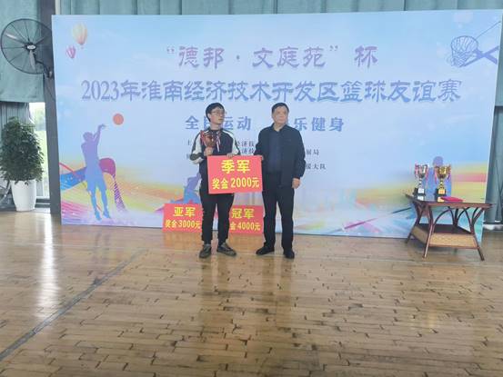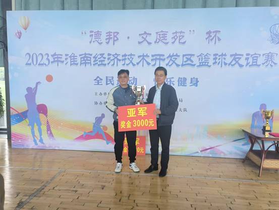 為進一步加強經開區各基層工會交流互動,凝聚高質量發展的強大合力,4月18日下午,為期5天的“德邦·文庭苑”杯2023年淮南經濟技術開發區籃球友誼賽在區消防大隊籃球館舉辦。此次活動由淮南經濟技術開發區總工會、社會發展局主辦,安徽德邦化工有限公司、開發區消防救援大隊協辦,比賽共有八支代表隊參加。淮南市經開區黨工委委員、紀檢工委書記朱英魁、安徽德邦化工有限公司黨總支書記劉默海出席開幕式并致開幕詞,安徽德邦籃球隊隊員朱立超代表全體運動員宣誓。 在比賽過程中,各參賽隊伍秉承“友誼第一、比賽第二”的原則,充分展現了“更高、更快、更強”的體育精神。他們在賽場中頑強拼搏,奮力爭先,以高昂的斗志,高超的球藝,賽出了風格,賽出了水平,賽出了友誼。經過五天的激烈角逐,安徽德邦籃球隊在小組賽中以第一名的成績出線,并在4月22日的總決賽中獲得亞軍?;茨鲜薪涢_區黨工委委員、紀檢工委書記朱英魁、安徽德邦化工有限公司黨總支書記劉默海為獲獎隊伍頒發獎杯和獎金。 此次籃球賽不僅展現公司籃球隊積極向上的精神風貌,同時也增進了球員的凝聚力和戰斗力,培養了大家的集體榮譽感,也加強了園區內企業之間的相互交流,更體現了德邦人敢為人先,爭創一流的企業精神。
